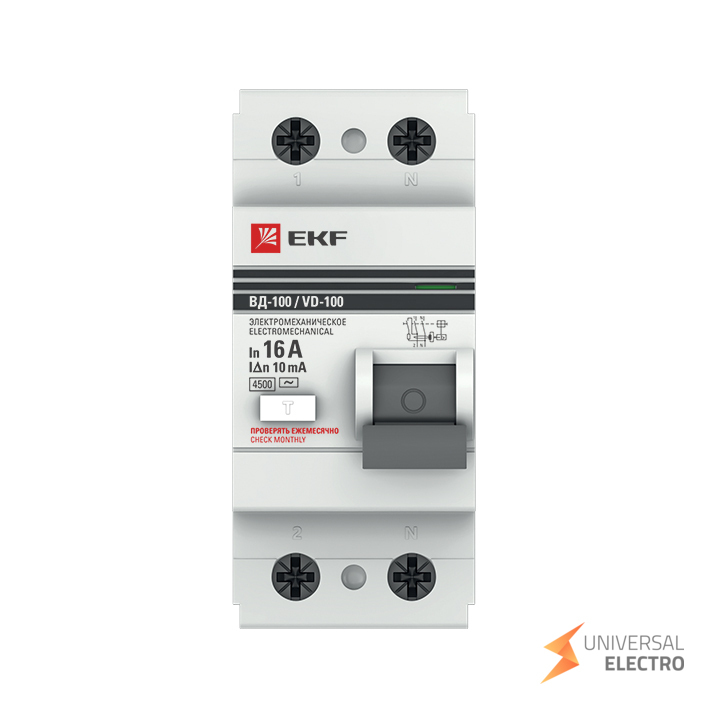 Устройство защитного отключения УЗО ВД-100 2P 16А/10мА от EKF PROxima предназначено для защиты электрических цепей от токов утечки. Это электромеханическое устройство обеспечивает безопасность, предотвращая поражение электрическим током и минимизируя риск возгорания. УЗО подходит для использования в жилых и коммерческих помещениях, обеспечивая надежную защиту при возникновении аварийных ситуаций.