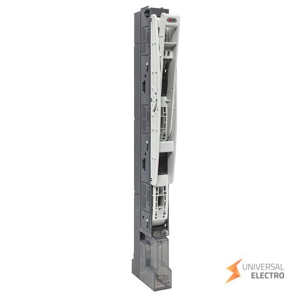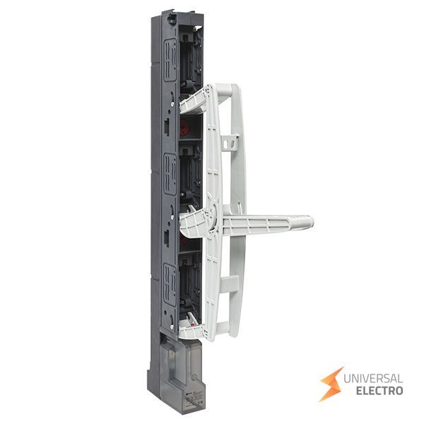 Устройство ввода-распределения электрической энергии (УВРЭ) v2 вертикального исполнения предназначено для распределения и защиты электрических цепей. Оно рассчитано на номинальный ток до 160А и совместимо с предохранителями ППН габарита 00. Устройство монтируется вертикально и обеспечивает надежное соединение и защиту в электрических системах. Применяется в различных промышленных и коммерческих установках для управления и защиты электропитания.