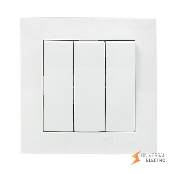 Выключатель Валенсия 3-клавишный, рассчитанный на ток до 10А, предназначен для управления освещением в жилых и коммерческих помещениях. Изделие выполнено в белом цвете и относится к линейке EKF PROxima, что обеспечивает надежность и долговечность. Подходит для стандартного монтажа в стену, обеспечивая удобство и простоту использования.