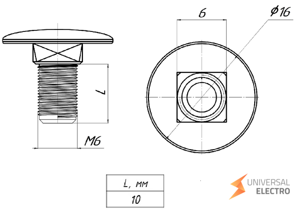 Винт с гладкой головкой и квадратным подголовником М6х10 соответствует стандарту DIN 603. Применяется в строительных и монтажных работах для соединения металлических и деревянных конструкций. Квадратный подголовник предотвращает проворачивание винта при затягивании гайки, обеспечивая надежность соединения. Изготовлен из прочных материалов, устойчивых к коррозии.