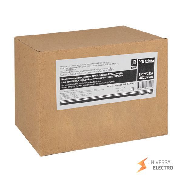 Выключатель-разъединитель ВР32У-35A71240-R рассчитан на ток до 250А и предназначен для управления электрическими цепями. Он имеет две направления и оснащен дугогасительными камерами для повышения безопасности. Устройство комплектуется передней смещённой рукояткой, что облегчает его эксплуатацию и установку. Применяется в промышленных и коммерческих электроустановках для обеспечения надежного разъединения цепей.