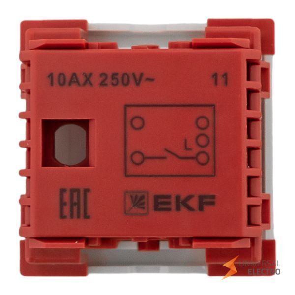 Одноклавишный выключатель EKF рассчитан на ток до 10 ампер и предназначен для управления электрическими цепями в жилых и коммерческих помещениях. Он не оснащен индикатором, что делает его подходящим для использования в местах, где не требуется визуальная индикация состояния. Устройство обеспечивает надежное и безопасное переключение электроэнергии.