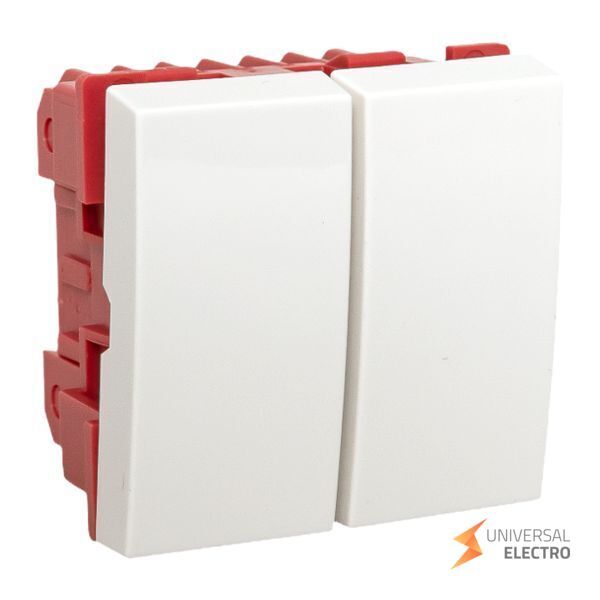 Двухклавишный выключатель EKF предназначен для управления двумя независимыми электрическими цепями с максимальным током 10 ампер. Он не оснащен индикатором состояния, что делает его подходящим для установки в местах, где не требуется визуальная индикация. Выключатель может быть использован в жилых и коммерческих помещениях для управления освещением или другими электрическими устройствами.