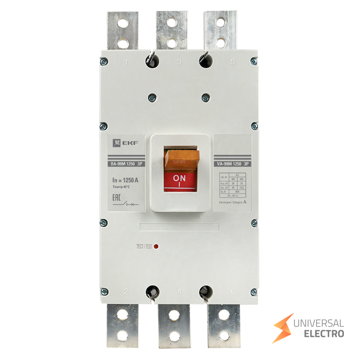 Автоматический выключатель ВА-99М 1250/1250А 3P 35кА от EKF предназначен для защиты электрических цепей от перегрузок и коротких замыканий. Он рассчитан на номинальный ток 1250 ампер и способен выдерживать ток короткого замыкания до 35 кА. Трехполюсная конструкция делает его подходящим для использования в трехфазных системах электроснабжения.