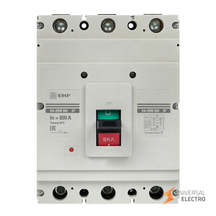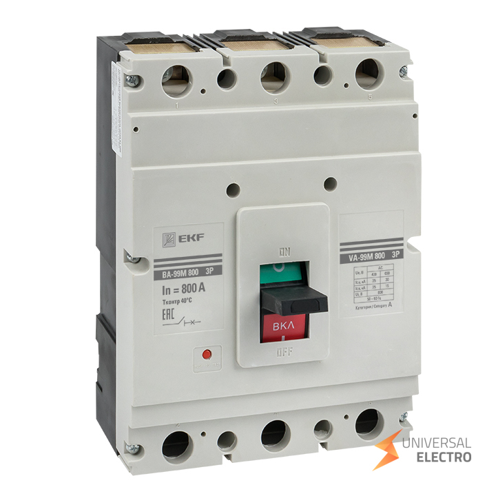 Автоматический выключатель ВА-99М предназначен для защиты электрических цепей от перегрузок и коротких замыканий. Он рассчитан на номинальный ток 800 А и обладает трехполюсной конструкцией. Максимальная отключающая способность устройства составляет 50 кА, что делает его подходящим для использования в промышленных и коммерческих установках. Выключатель обеспечивает надежную защиту и долговечность в эксплуатации.