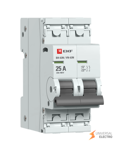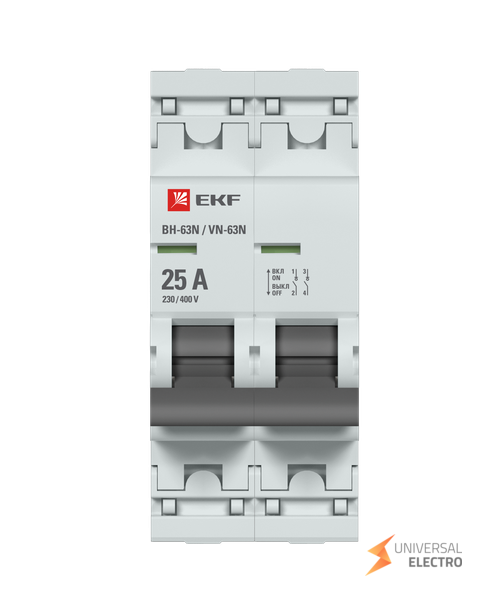 Выключатель нагрузки 2P 25А ВН-63N EKF PROxima предназначен для безопасного включения и отключения электрических цепей с номинальным током до 25 ампер. Двухполюсная конструкция позволяет использовать его в однофазных и двухфазных системах. Он обеспечивает надежную защиту от перегрузок и коротких замыканий, что делает его подходящим для использования в жилых и промышленных помещениях.