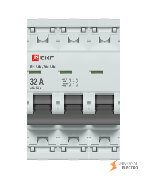 Выключатель нагрузки ВН-63N EKF PROxima предназначен для коммутации электрических цепей с номинальным током до 32 ампер. Он обеспечивает надежное отключение и включение трехфазных цепей. Устройство подходит для использования в промышленных и коммерческих установках, где требуется надежная защита и управление электроснабжением. Устанавливается в распределительные щиты и обеспечивает безопасность эксплуатации электрических систем.