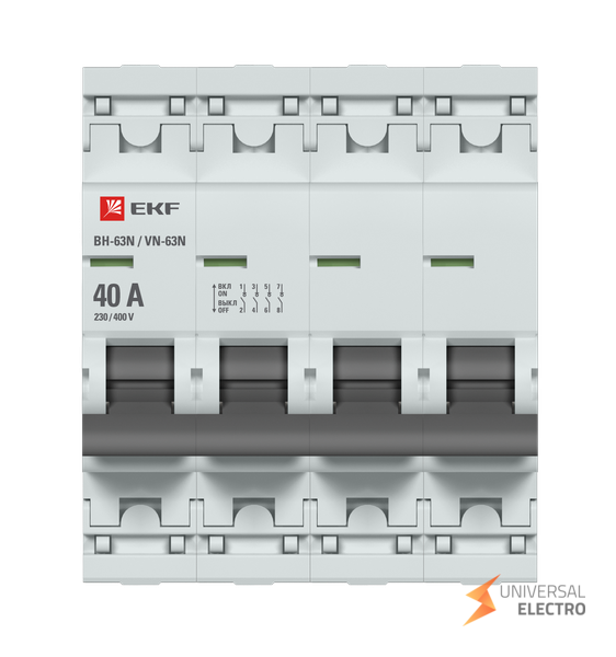 Выключатель нагрузки 4P 40А ВН-63N EKF PROxima предназначен для коммутации электрических цепей с номинальным током до 40 ампер. Обеспечивает надежное отключение и подключение нагрузки в четырехполюсных системах. Используется в распределительных щитах для защиты и управления электрическими сетями. Подходит для промышленных и коммерческих объектов, где требуется высокая надежность и безопасность.